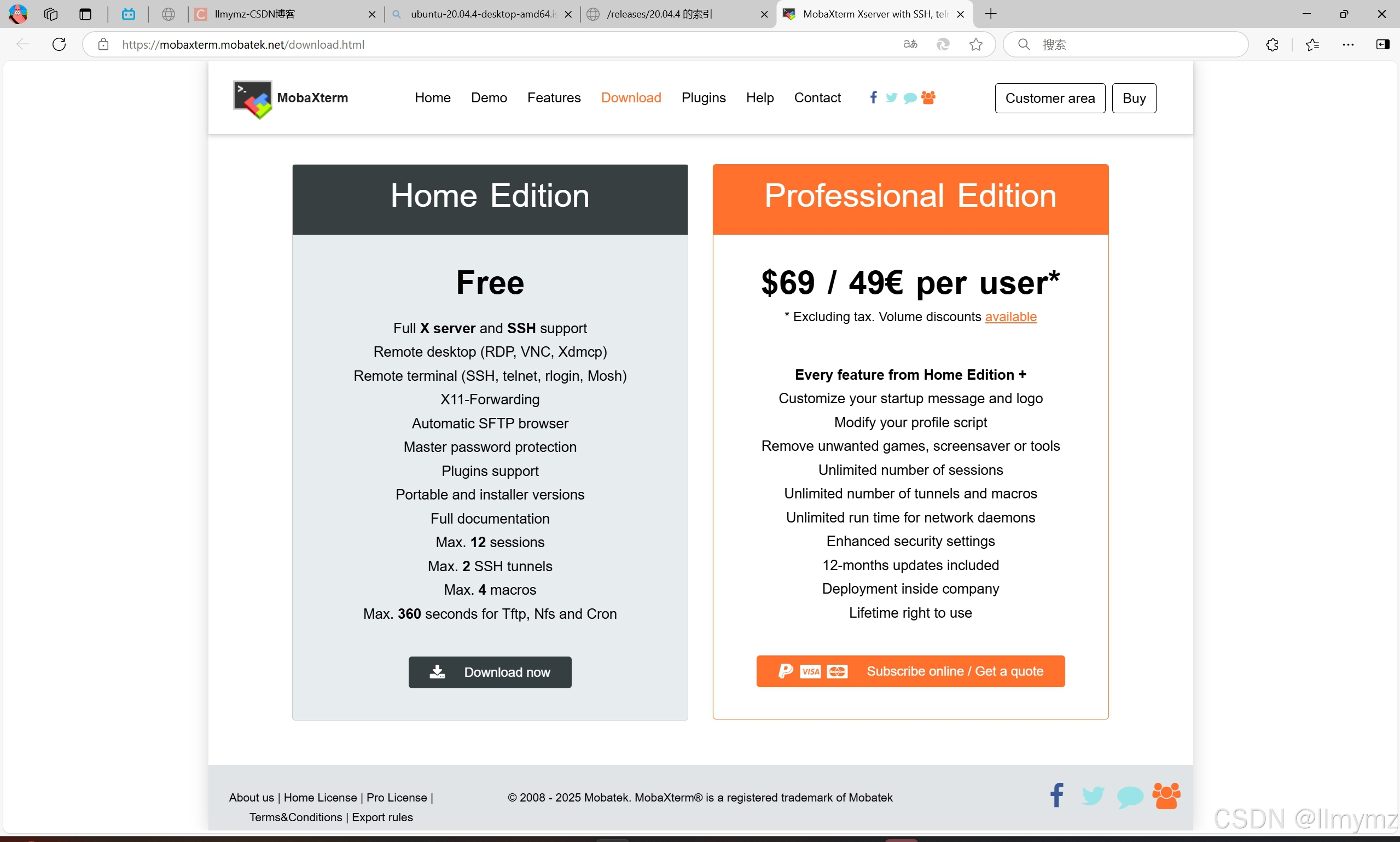 MobaXterm 分为免费版(Home Edition)和专业版(Professional Edition),免费版