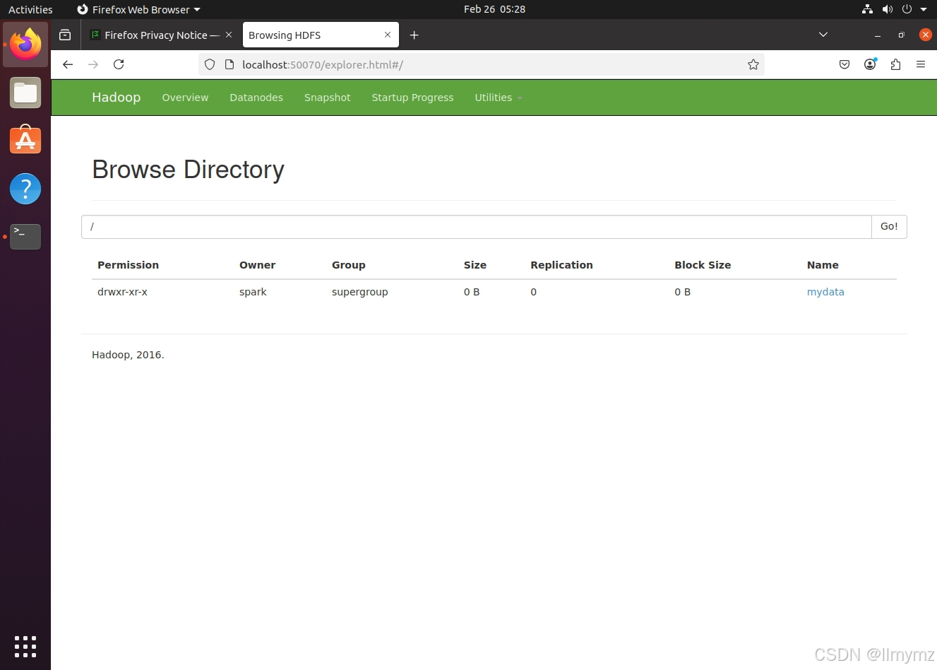 3)现在可以测试是否能够正常操作 HDFS,比如创建目录,上传文件等。