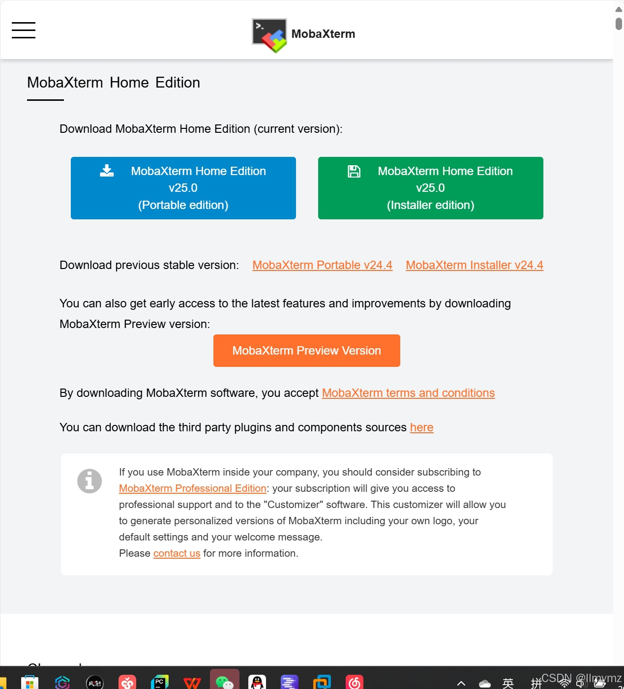 址是 https://mobaxterm.mobatek.net/download.html, 如图所示。