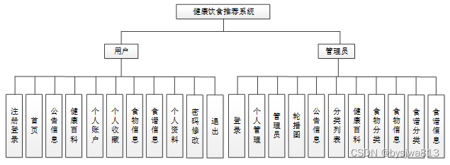 健康饮食推荐系统从角色上划分为了注册用户以及管理员两种角色。