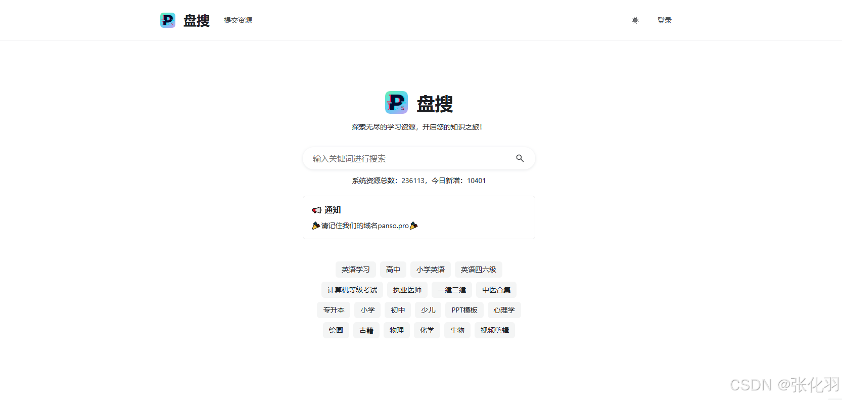 盘搜的资源真的非常丰富,从英语学习到计算机等级考试,从执业医师到一建二建,再到中医合集、专升本,甚至是小学、初中、少儿的教育资源,这里应有尽有。不仅如此,还有PPT模板、心理学、绘画、古籍、物理、化学、生物、视频剪辑等各类资料。无论是学生、职场人士还是兴趣爱好者,都能在这里找到自己需要的东西。