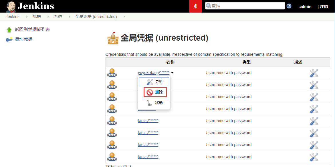 jenkins学习13-凭据管理(删除多余的凭据)