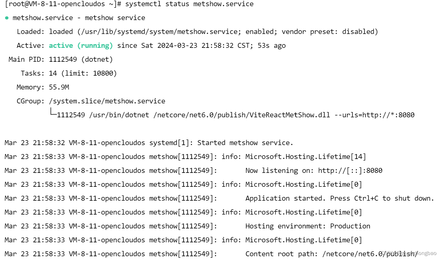 [root@VM-8-11-opencloudos ~]# dotnet MetShow.dll --urls="http://*:8080" --environment=Production