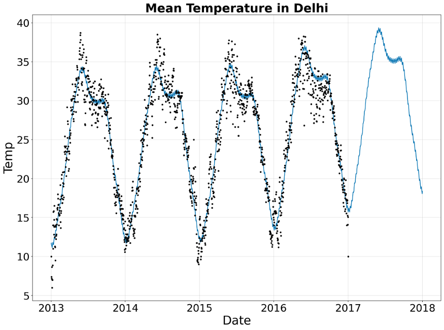 配置模型及其超参数后,我们需要训练模型并进行预测。 让我们对温度进行一年的预测。