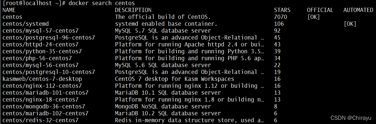 例如, 获取一个 centos 系统的基础镜像可以使用如下的命令