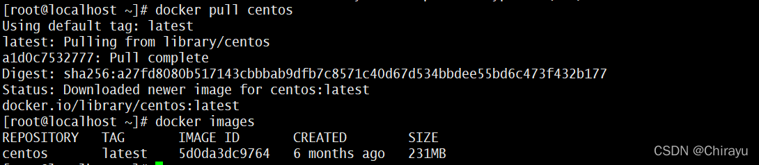 - 未指定版本一般会使用latest(最新的)版本:docker pull centos