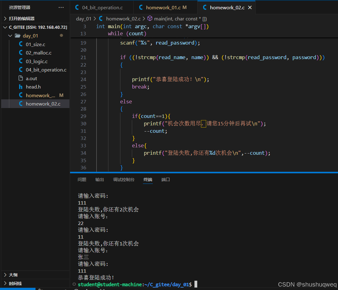 1、用户可以循环登录 例如输入错了一次密码 可以在进行输入