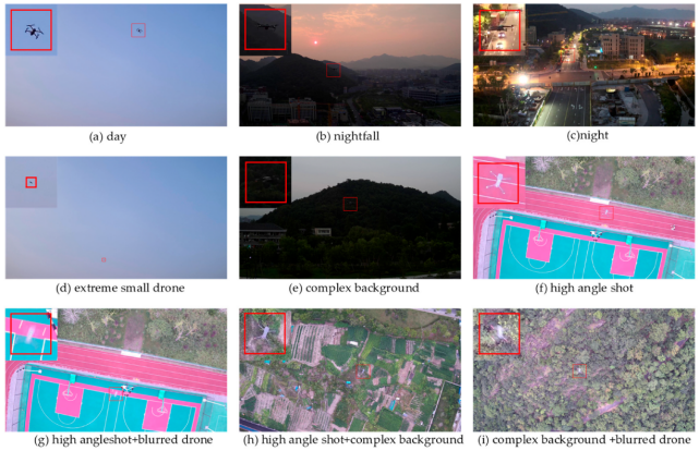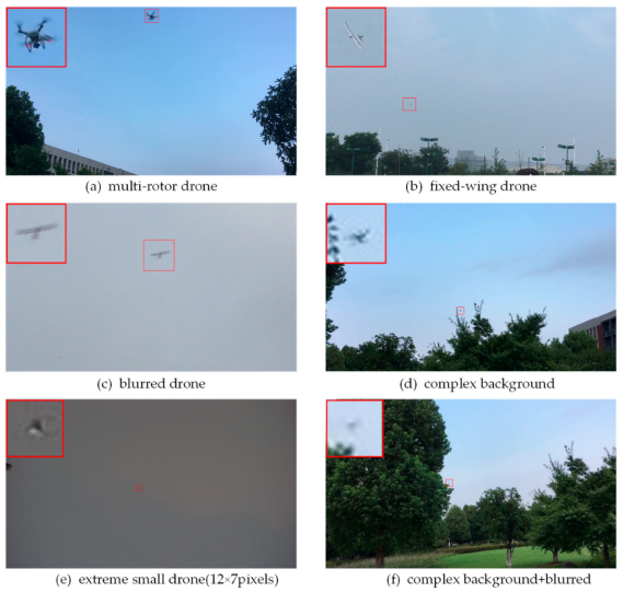 从上图可以看出,无人机在每张图像中占比不足1%,部分样本如下图所示。