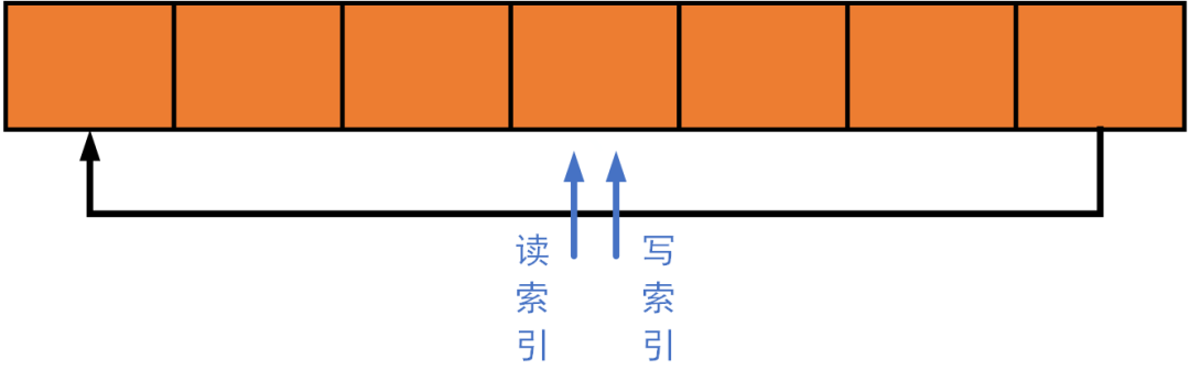 当环形缓冲区为空时,读索引和写索引指向相同的位置(因为是环形缓冲区,可以出现在任何位置);