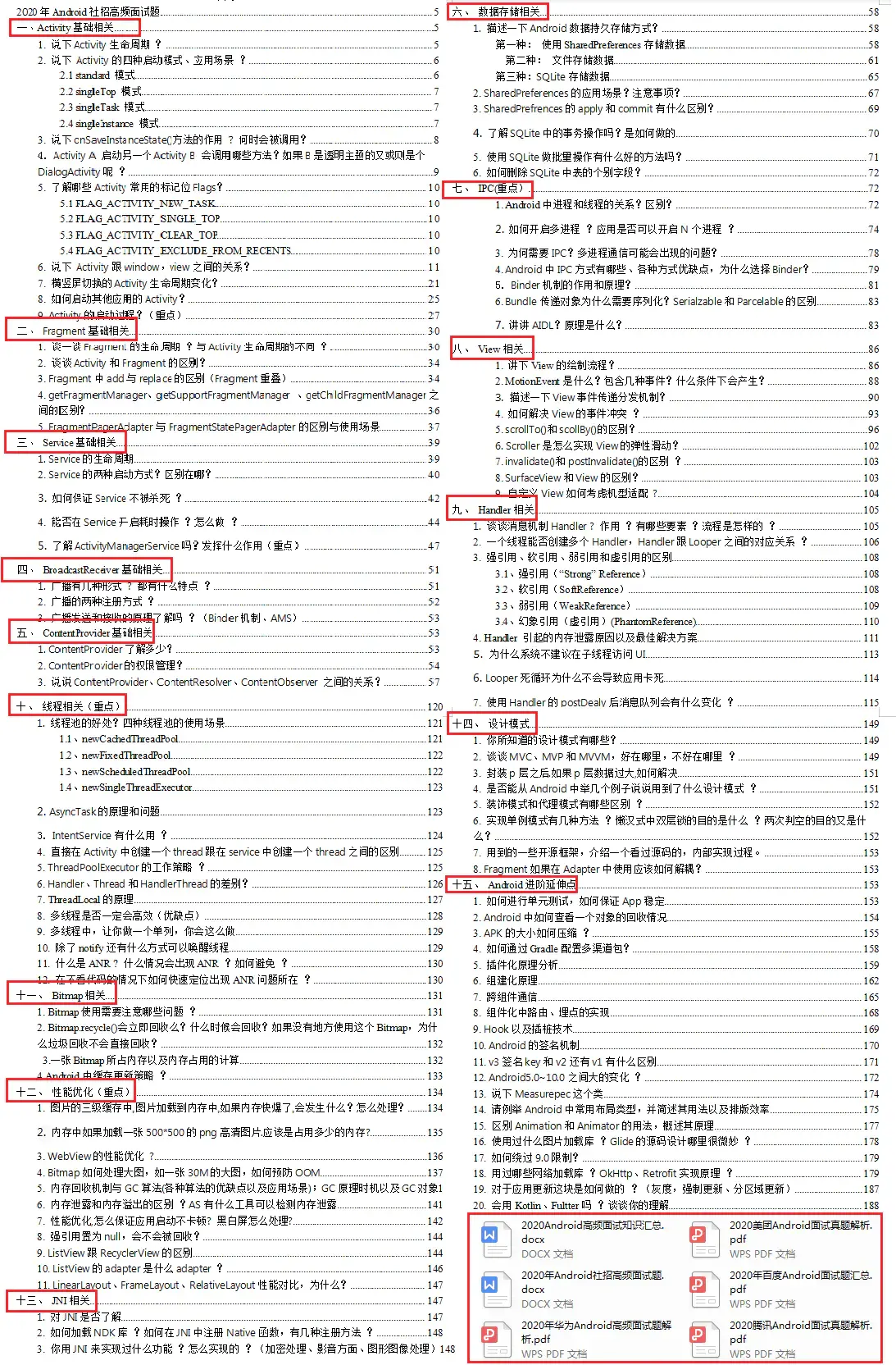 下面这份PDF是我翻阅了差不多3个月左右一些Android大博主的博客从他们那里取其精华去其糟泊所整理出来的一些Android的核心知识点,全部都是精华中的精华,我能面试到现在2-2资深开发人员跟我整理的这本Android核心知识点有密不可分的关系,在这里本着共赢的心态分享给各位朋友。