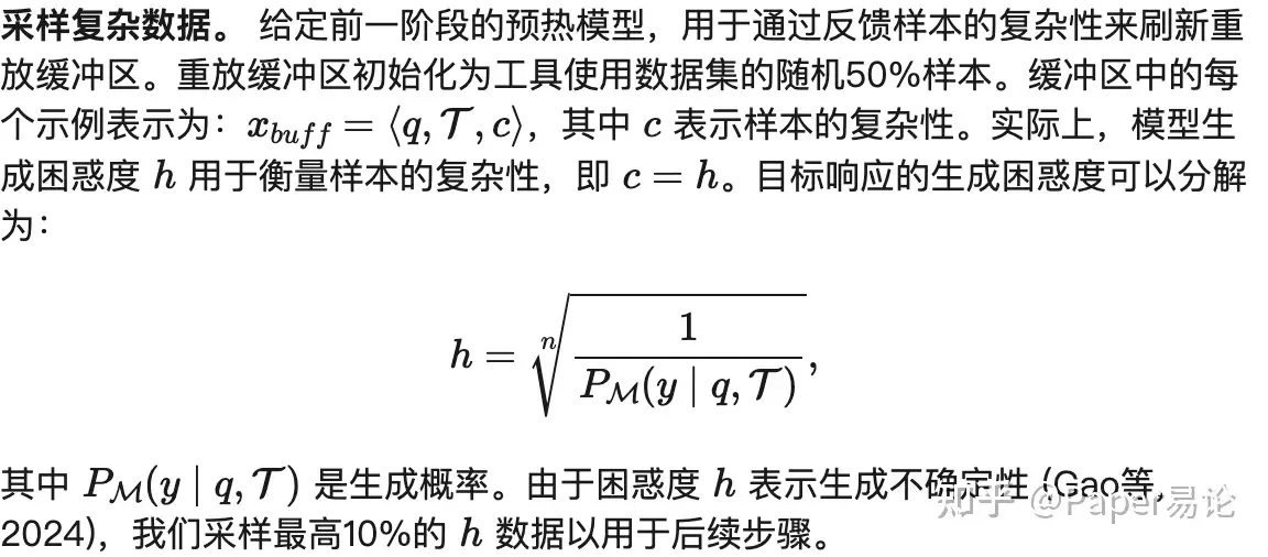 为了缓解使用合成工具使用数据进行LLM训练时的训练增益下降问题,在此模块中,我们提出了一种迭代强化学习方案,以持续修复这一缺陷。如图 [fig:main] 所示,它迭代刷新重放缓冲区以采样复杂数据并生成偏好数据以进行偏好优化。