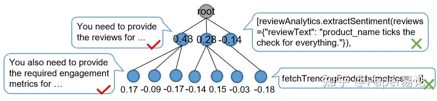 表 [tab:case_pair2] 展示了另一个偏好对案例,如图 [fig:case_pair2] 所示。在这种情况下,用户的查询缺乏提到的功能所需的特定细节(即 reviews 用于’ reviewAnalytics.extractSentiment ’和 metrics 用于’ socialTrends.fetchTrendingProducts ’)。助手的选定响应正确识别了这些参数值的需求,而拒绝响应在识别这些参数时出现了错误幻觉。