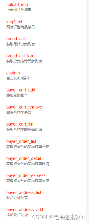 | api_name | String | 是 | API接口名称(包括在请求地址中)[item_search,item_get,item_search_shop等] |