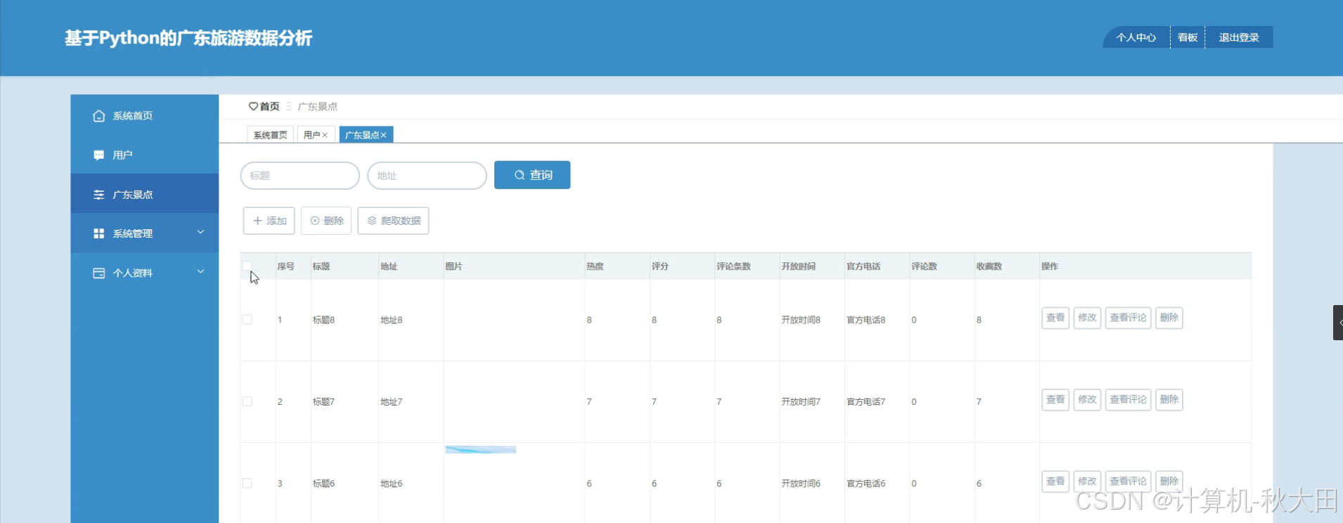 2026毕设-基于Python的广东旅游数据分析系统的设计与实现