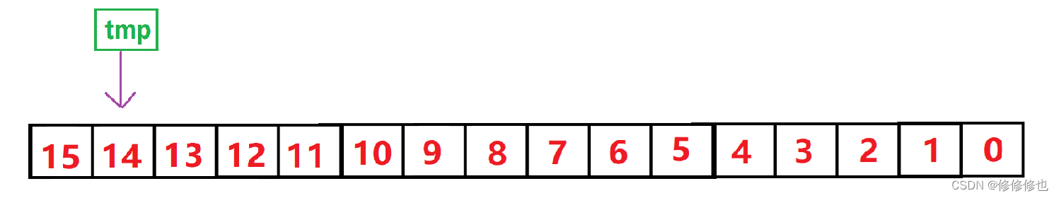 直接插入的最坏情况是遇到每一个tmp都直到比对到前面有序表的0号位置才插入,即数组完全逆序的情况: