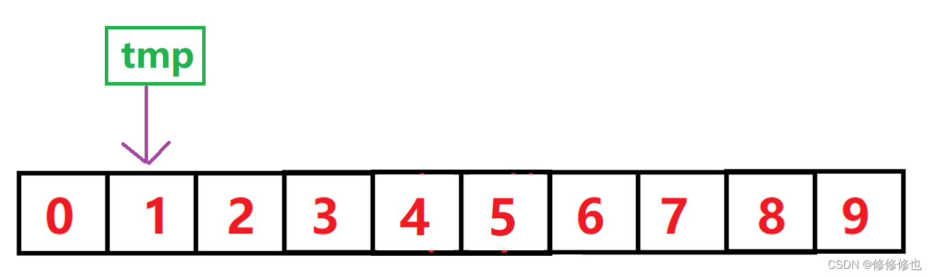 if (tmp < a[end]) //如果tmp小于比对元素,将比对元素向后挪
