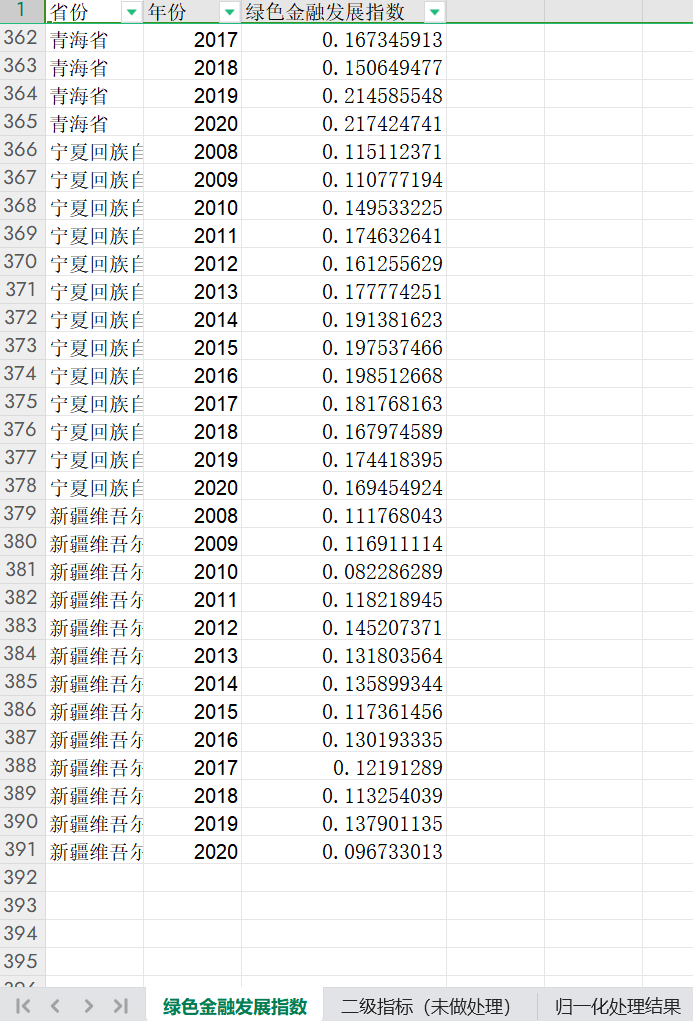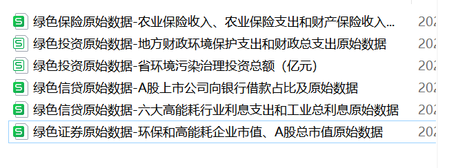 各省绿色金融发展指数及原始数据、绿色信贷、绿色证券、绿色保险、绿色投资数据,20