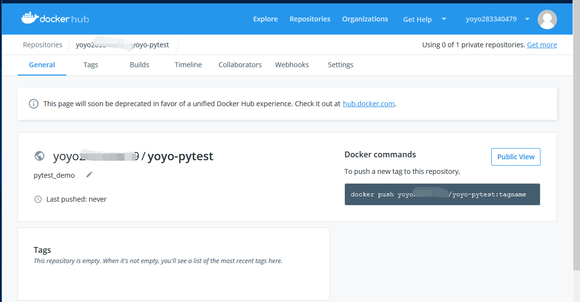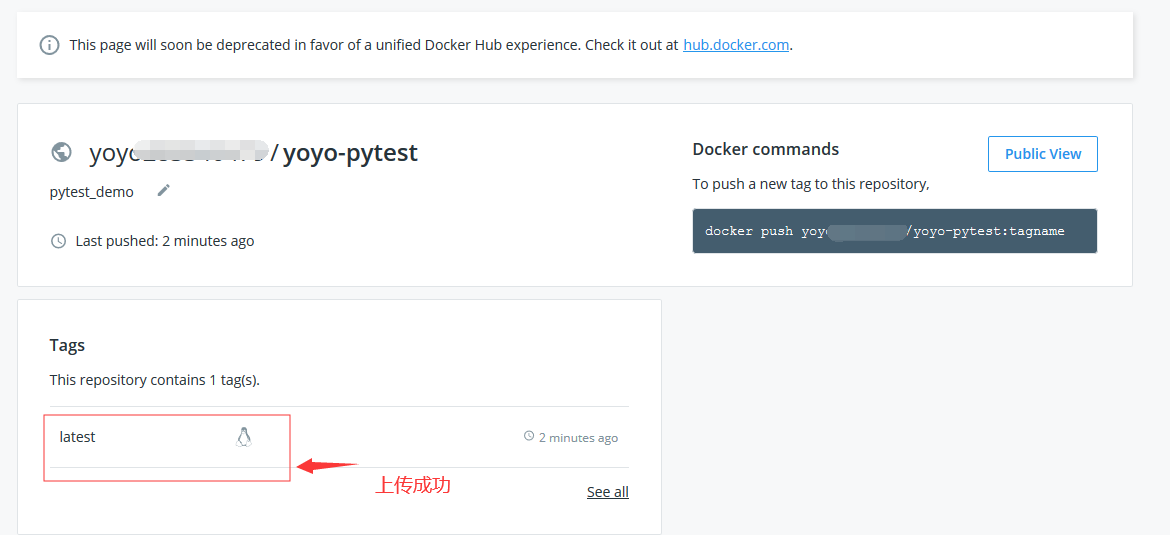 [root@VM_0_2_centos docker-run]# docker push yoyo******/yoyo-pytest