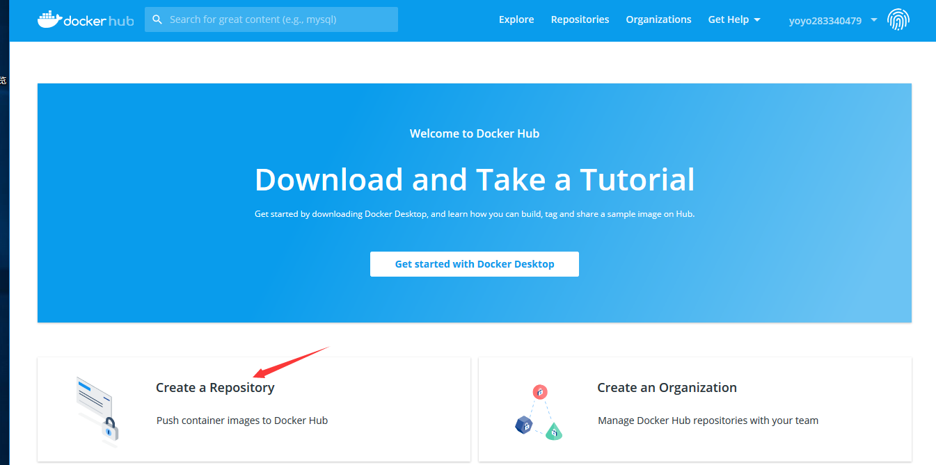 先登陆docker hub账号,关于账号的注册和登陆查看上一篇https://www.cnblogs.com/yoyoketang/p/11923050.html