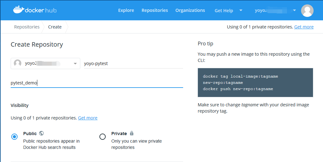 [root@VM_0_2_centos docker-run]# docker tag yoyo_pytest:v1 yoyo*****/yoyo-pytest