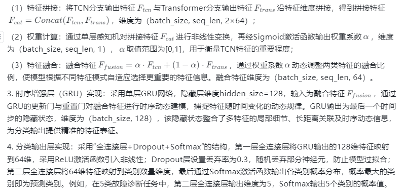 2. 自适应注意力融合子模块实现:为充分发挥TCN分支局部特征与Transformer分支长距离特征的优势,引入自适应注意力融合机制,通过学习得到两类特征的权重系数,实现特征的动态加权融合。具体步骤为: