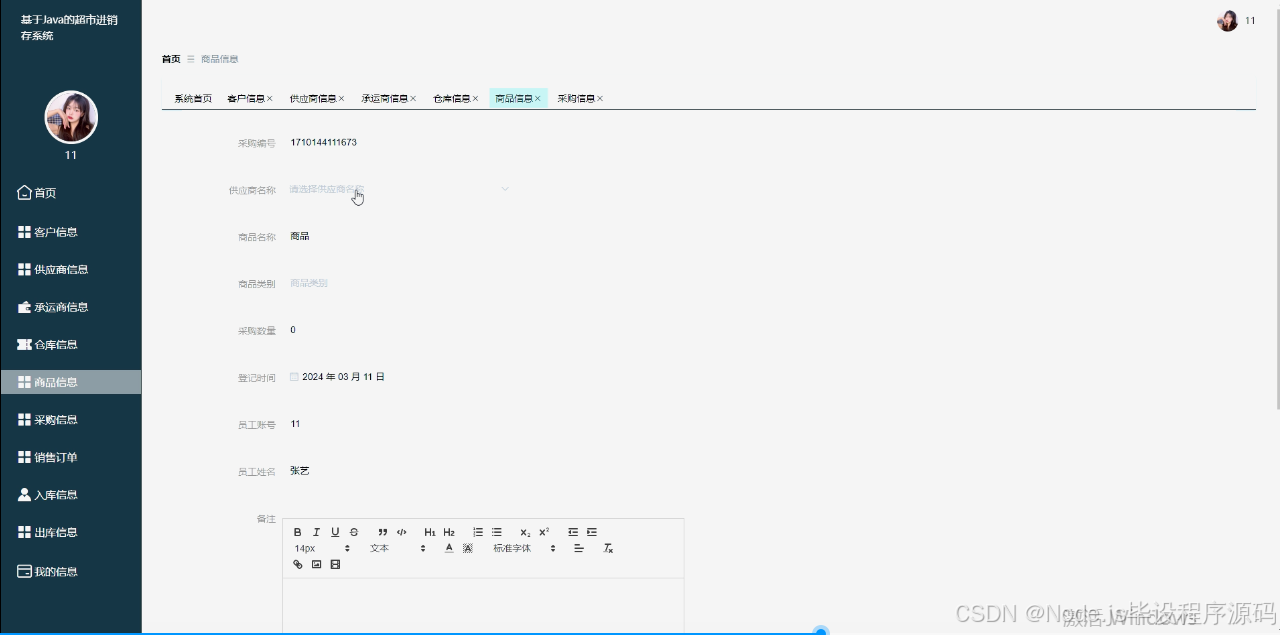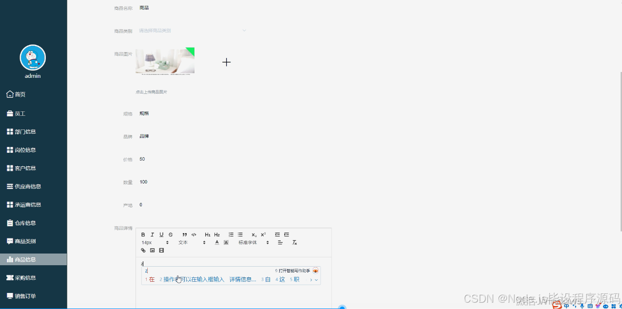 - 商品信息管理:实现商品信息的录入、维护和查询功能,包括商品名称、编号、价格、库存等。