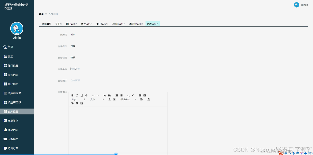 - 仓库管理:实现仓库信息的录入、维护和查询功能,包括仓库名称、位置、容量等。