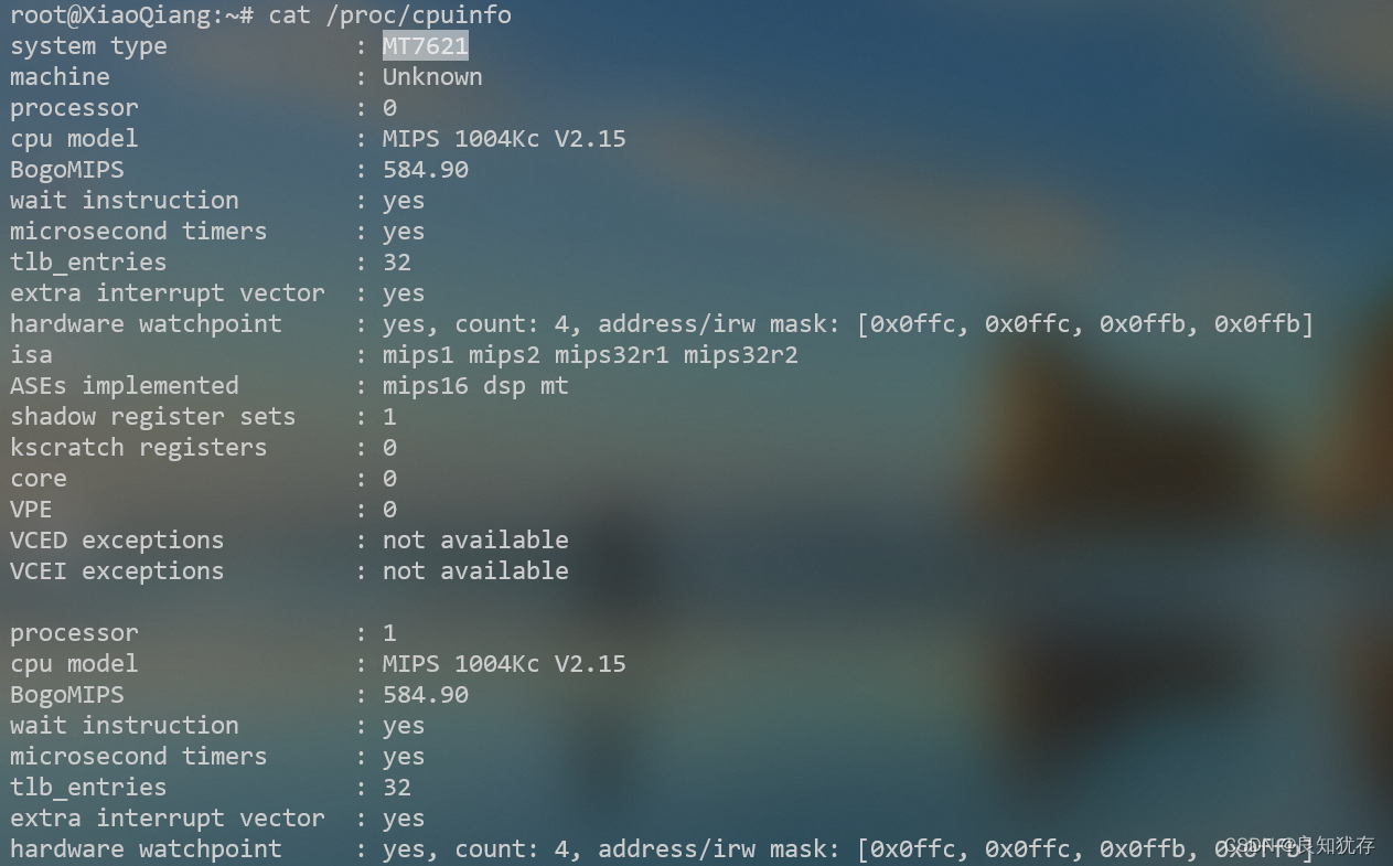 首先就是需要进行芯片和机器型号选择,大部分人是知道我们购买路由器型号,但是机器芯片型号是不知道的,这个可以网络查询一下,我是通过ssh登录机器进行cat /proc/cpuinfo查看的芯片型号,最后一招大家也可以拆机查看芯片型号。