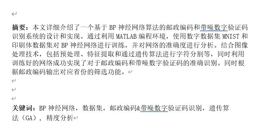 基于BP神经网络的matlab的手写数字识别系统万字文档 包含代码和文档,可实现三项功能具有很好的移植性: 1.单个手写体数字的实时识别 2.邮政编码识别 3.带噪验证码识别 程序还可以实现灰度化,二值化,去噪声等图像预处理,以及使用遗传算法进行字符的分割,具体识别效果如下图 本链接附赠详细使用方法,帮助你快速运行程序,文档字数为万字以上,具体看下图