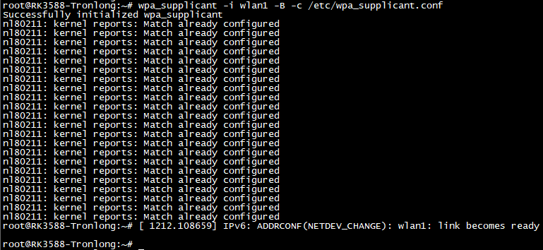 Target# wpa_supplicant -i wlan1 -B -c /etc/wpa_supplicant.conf