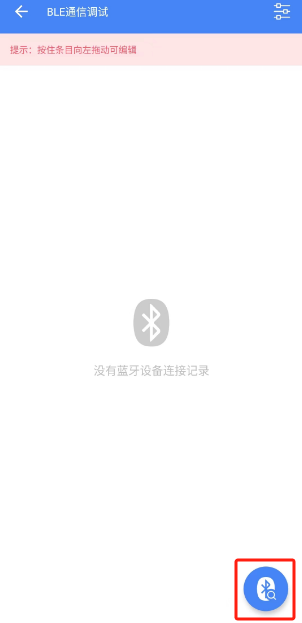 安装完成后打开APP,点击"BLE GATT",然后点击右下角的搜索图标,找到名为"WH-BLE 105"的设备点击进行连接,如下图所示。
