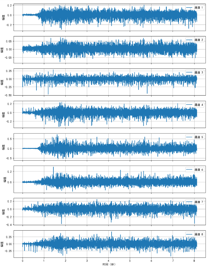axs[ch].plot(time, emg_data[ch], label=f'通道 {ch+1}')