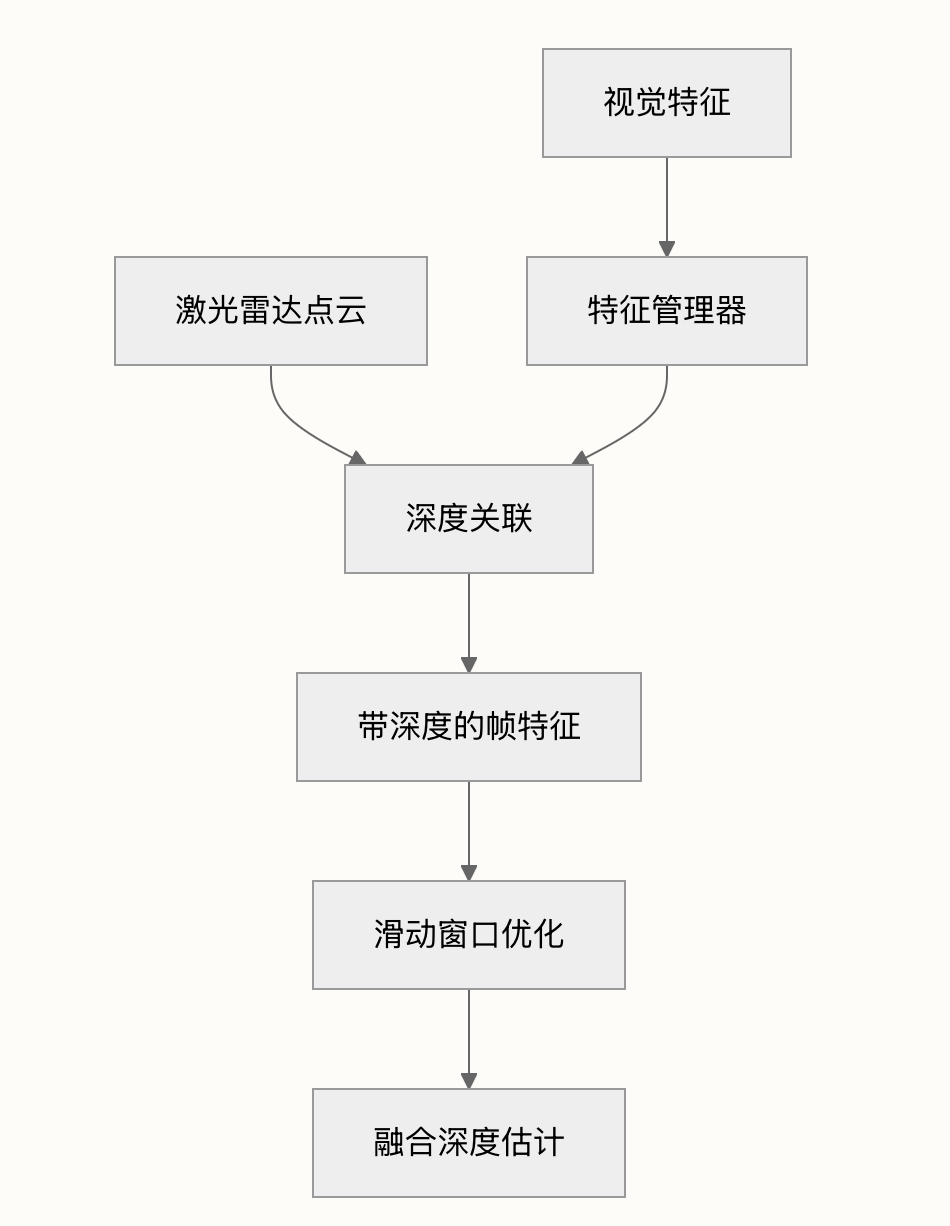 系统的架构实现了激光雷达传感器的深度信息与视觉特征跟踪的无缝集成,构建了一个在多变环境条件和传感器配置下保持精度的鲁棒感知框架。