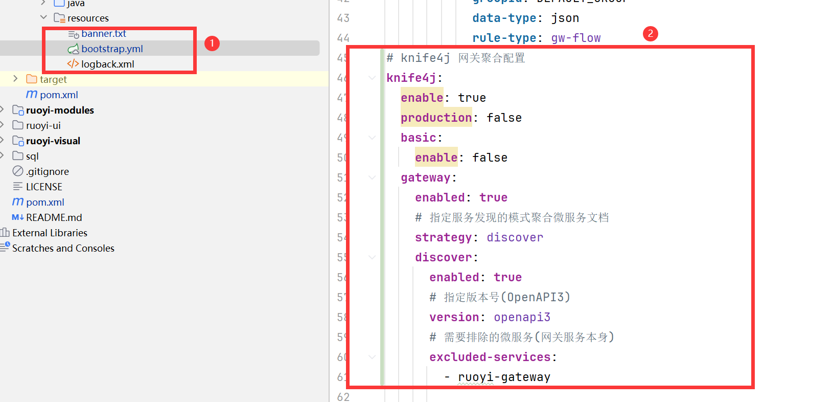 四:在网关模块里面resources下的bootstrap.yml文件,添加配置