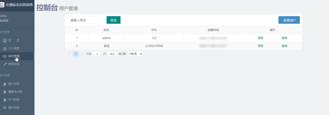 用户在点击图片识别的链接后可以在看到界面中所有的历史图片识别列表,点击上方的新增图片识别按钮后会弹出文件对话框,用户可以选择本地的图片进行识别,选择正确路径的图片后系统会对图片中的交通标志进行识别,识别完成之后会显示在图片识别列表中。