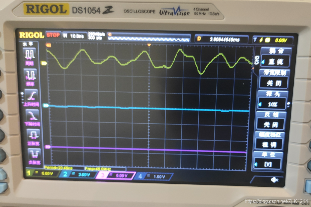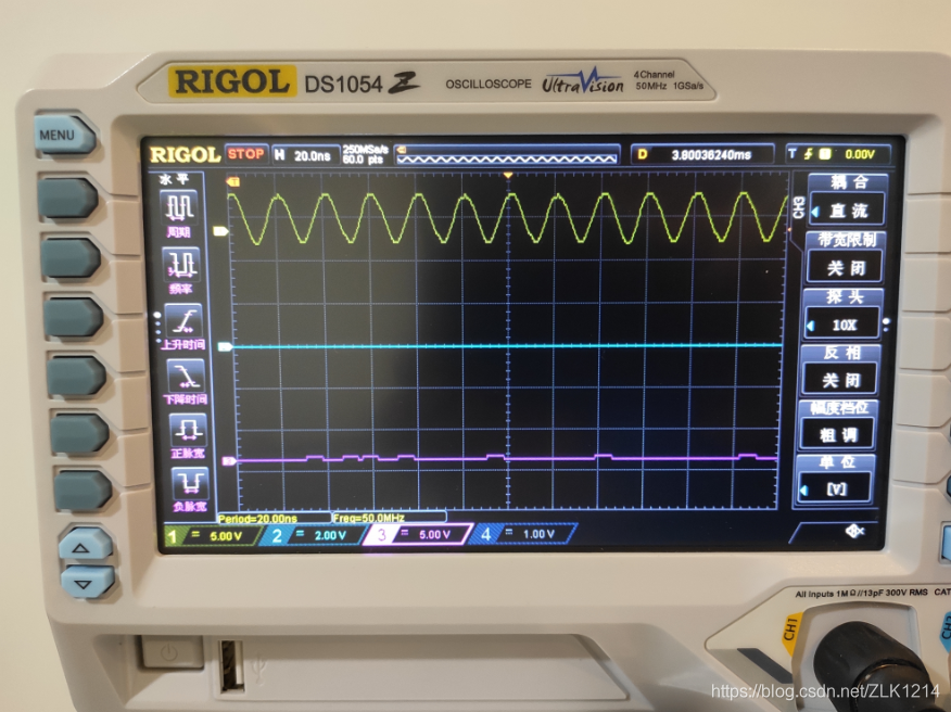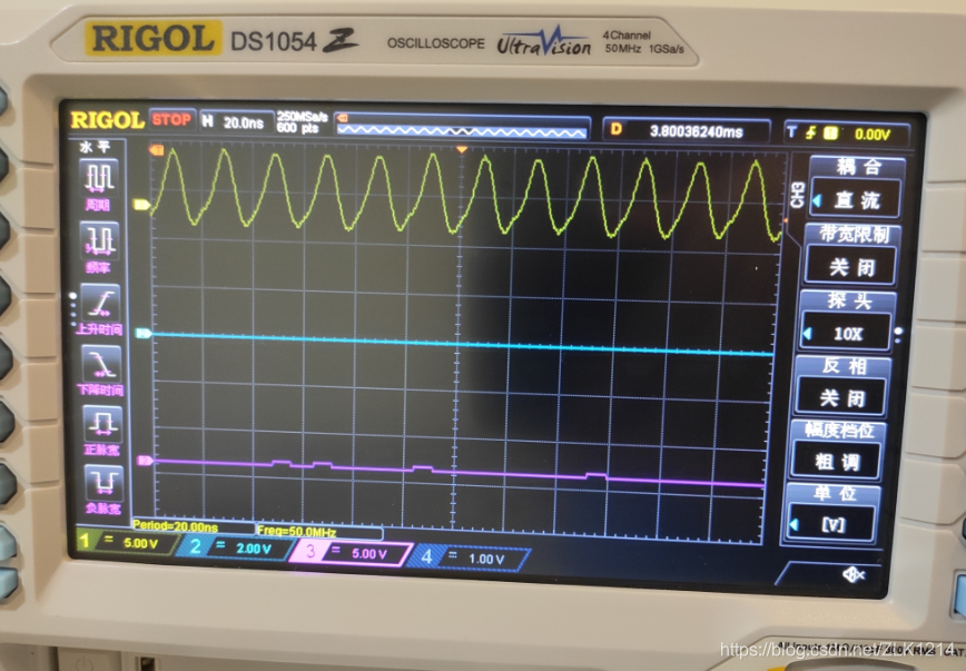 可以看到频率为50MHz,波形还算正常。