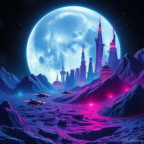 比如,我们输入:赛博朋克月球,就可以得到: