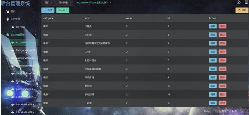 管理员在后台管理界面可以对系统所有数据详情进行编辑、删除、修改和新增的操作。