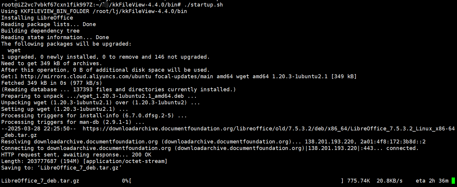2.2解压后进入bin目录,直接执行startup.sh脚本运行(ubuntu会自己下载LibreOffice)