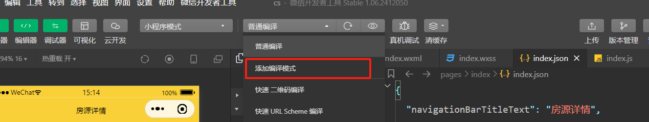 一、点击编译按钮左侧配置编译模式,打开选择框选择“添加编译模式”。