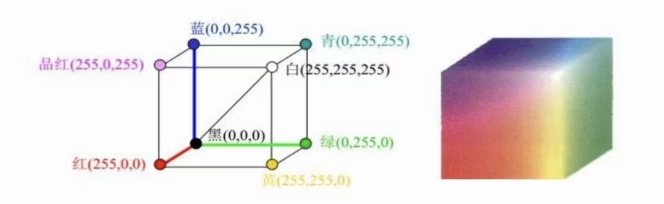 彩色图之所以有丰富的颜色,核心是每个像素都由 “红(R)、绿(G)、蓝(B)” 三种基础颜色(称为 “三原色”)混合而成,就像我们用红、绿、蓝三种水彩颜料,能调出各种颜色一样。而每种基础颜色的 “用量多少”,也分别用0-255 的数字来控制 —— 最终像素的颜色,就是这三种颜色 “按比例混合” 的结果。