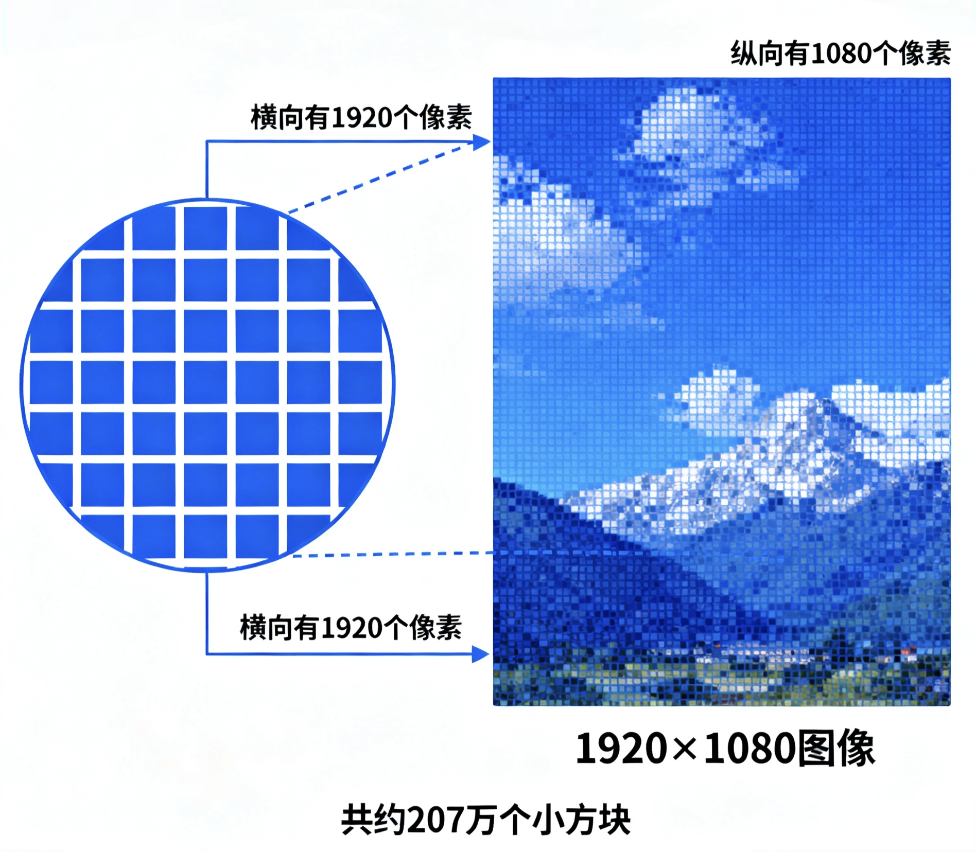 就像拼图是由一个个小方块拼出来的,图像由无数个 “像素小方块” 组成。比如我们常说的 “1920×1080 图像”,意思是这张图横向有 1920 个像素,纵向有 1080 个像素,总共约 207 万个小方块。