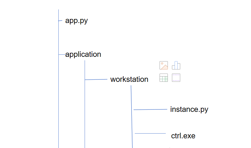 对于一些除了包的导入,就是文件的路径这种。下面是文件树。我的程序的入口是app.py。但是在instance.py中调用了ctrl.exe。那么由于是在app.py启动的,那么他的路径就是默认从app.py开始,所以如果想要在instance.py中找到ctrl.exe。