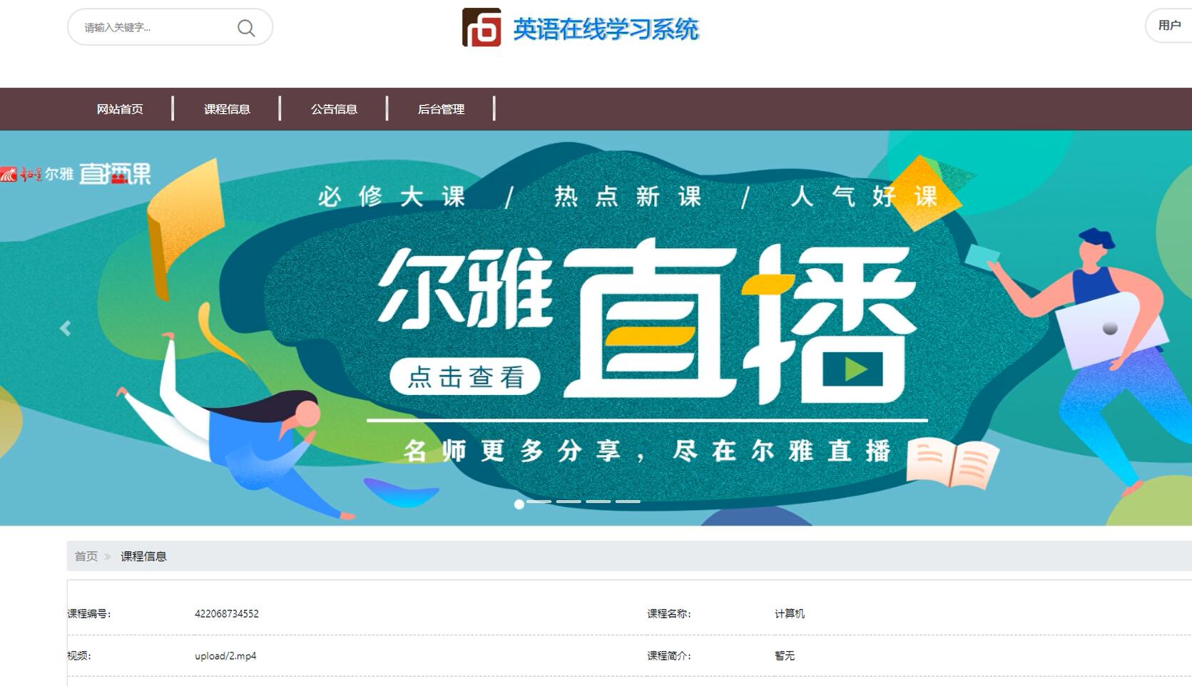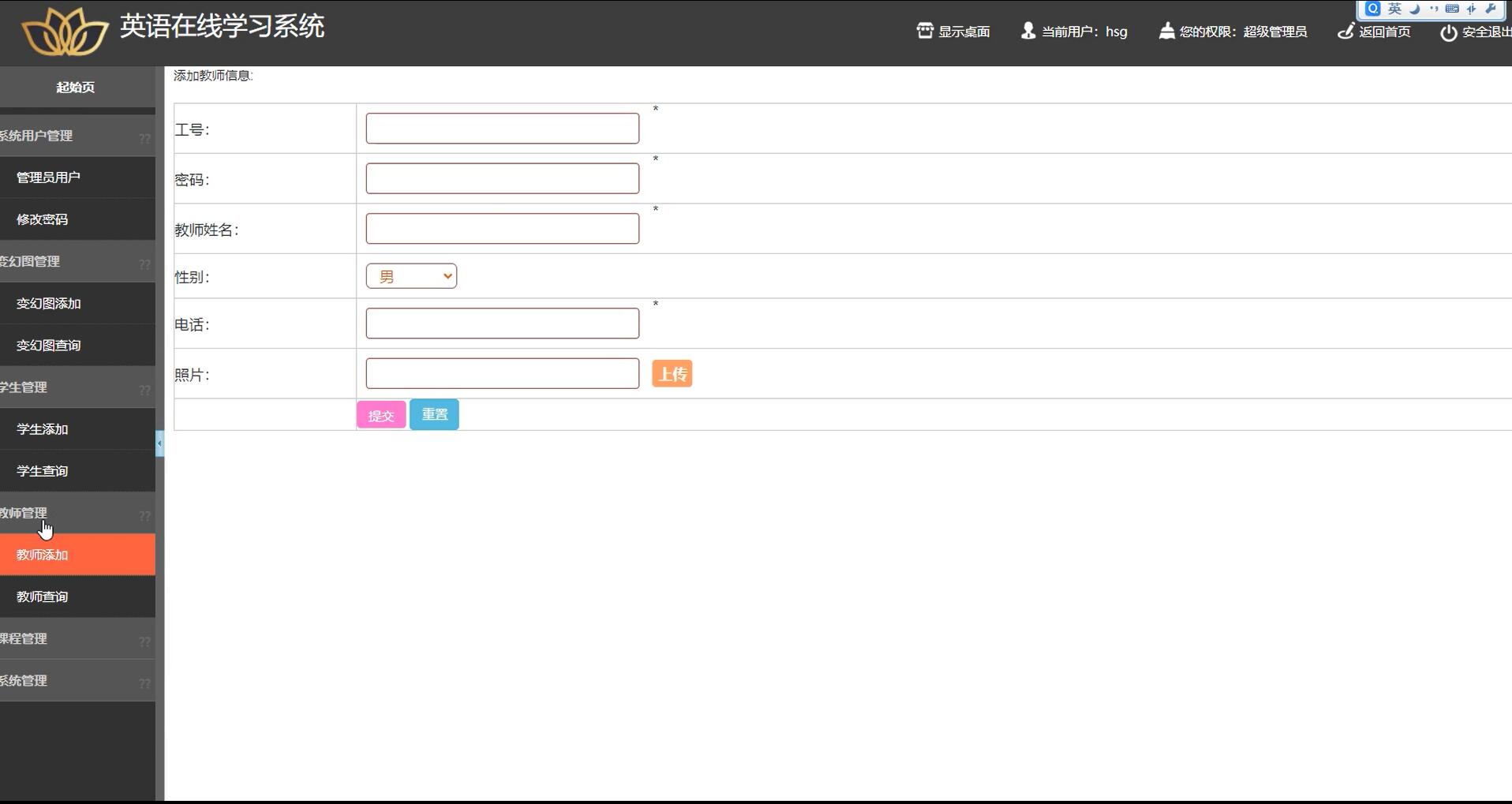 课程添加:教师可以添加新的英语课程,包括课程名称、课程描述、课程内容等信息。