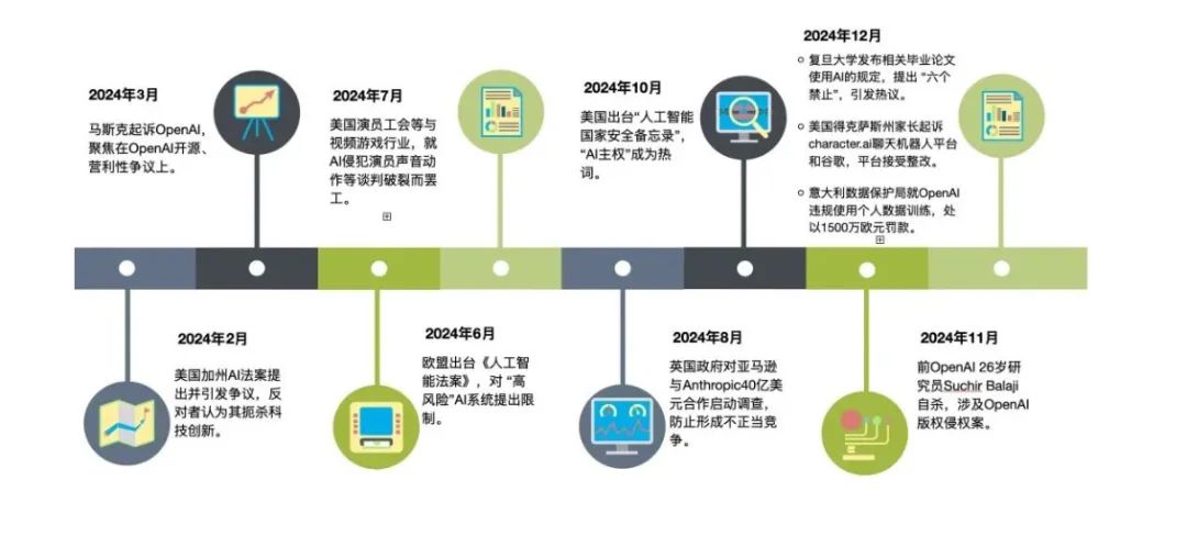 在冲突和争议中,2024年AI治理政策从原则走向实践,安全治理迈向深水区,出台多项标准和测试。如6月欧盟出台《人工智能法案》,引入对 “高风险” 人工智能系统的限制,以及要求人工智能团队在使用数据时提高透明度的规则,业界认为这是一个标杆。