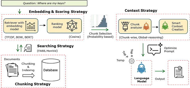 - • 上下文策略 (Context Strategy): 智能地组合和处理文本块,以创建连贯的上下文。