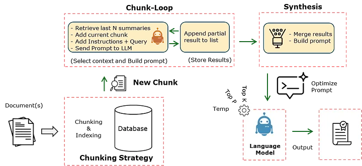 对于超出上下文窗口的大型文档,summarize 函数通过迭代处理文本块来工作。每个块的摘要都会考虑前面块的摘要,以保持连贯性。最后,所有部分摘要被合成为一个统一的、结构良好的文档。