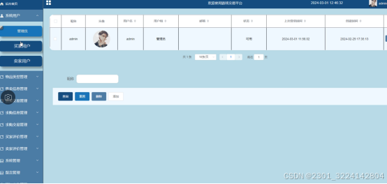 - 卖家评价管理:管理员管理卖家的评价信息,包括查看卖家评价列表,以及对卖家的服务进行评估。