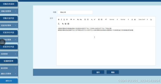 - 通知公告管理:管理员负责发布和管理系统的通知公告,可以添加新的通知公告,确保用户获取最新的平台消息。