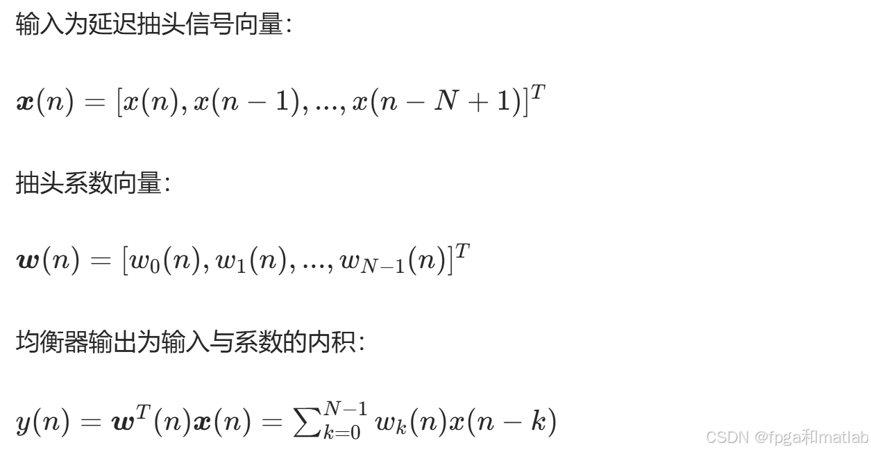 自适应均衡器的基本结构为横向滤波器(抽头延迟线),分为线性均衡器(LE)和判决反馈均衡器(DFE),DFE因抗ISI性能更优应用更广。
